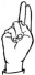 На ћирилици написано ШАЛЕ РАДОЈЕВИЋ састоји се из 13 слова [?]. Исписано ћириличном једноручном азбуком за глувонеме: